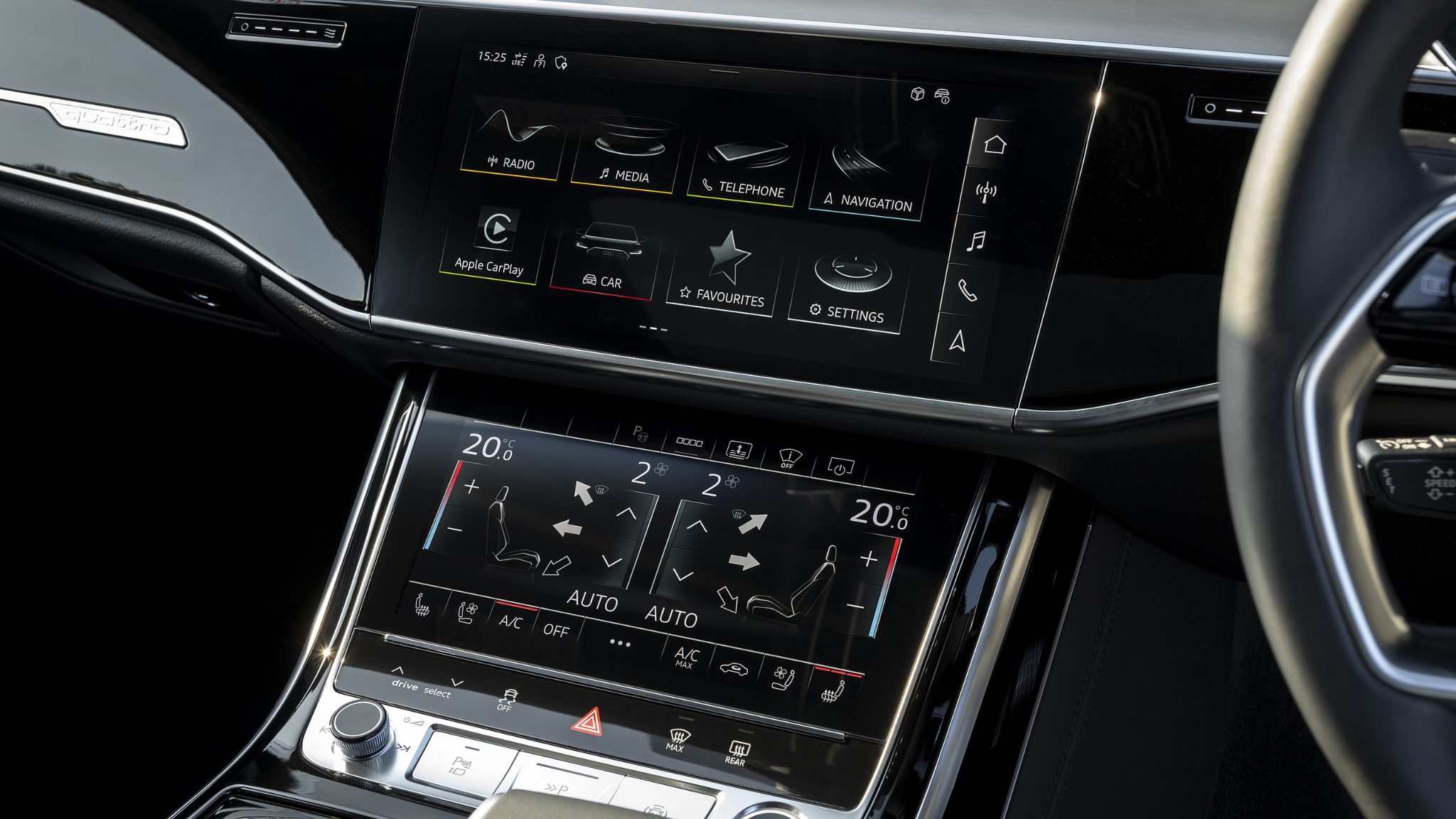 This one is finished in black on black, and it suits the car perfectly - sleek and genuinely classy. Inside you get the full modern A8 experience: heated and ventilated front seats, electric rear seats with their own tablet control unit, and the stunning Bang & Olufsen audio system that fills the cabin with rich sound. The S Line package adds just the right touch of sportiness without taking away from the comfort.